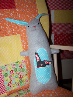 She is a marsupial bunny named Amelie (she came with the name). Her baby didn't have a name, so I named him Francois. He comes out of her little pocket. Amelie is super cuddly and I like to sit in the glider and hold her while I read stories to the baby. My husband thinks it's kind of silly that I read stories to the